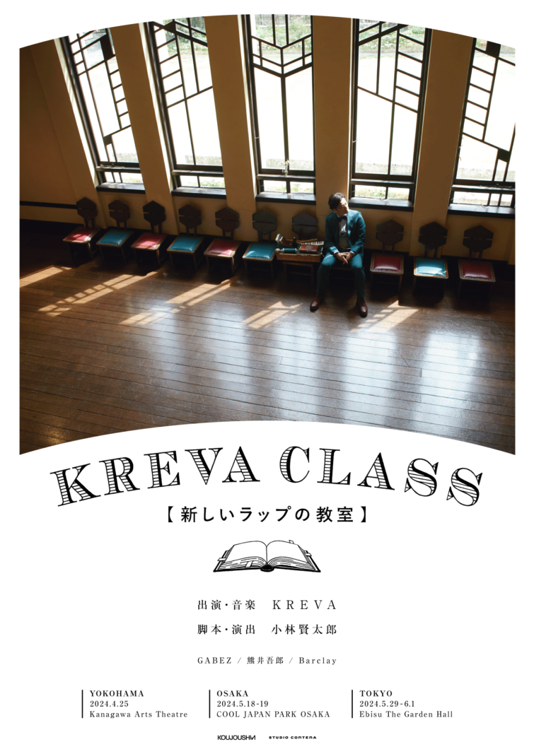 『 KREVA CLASS – 新しいラップの教室 – 』は、ヒップホップアーティストのKREVAさんと劇作家・小林賢太郎さんがタッグを組んで作り上げた舞台で、日本語の楽しさをラッパーならではの視点から、あの手この手でお届けする授業型エンターテインメントです。