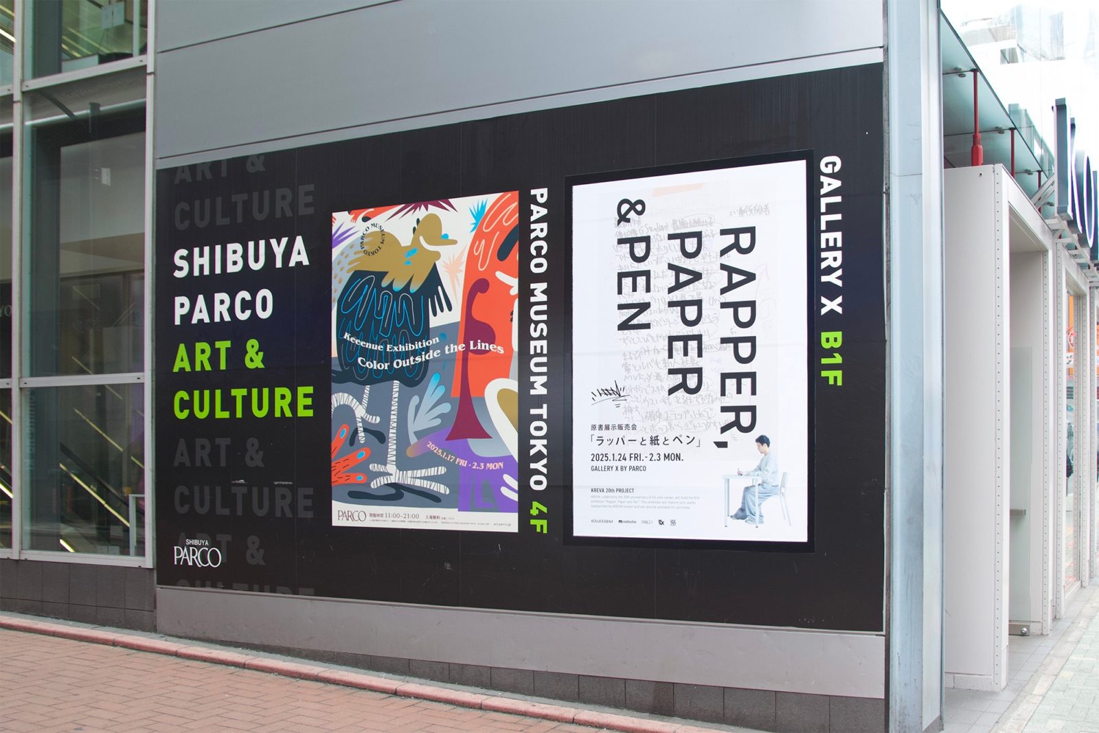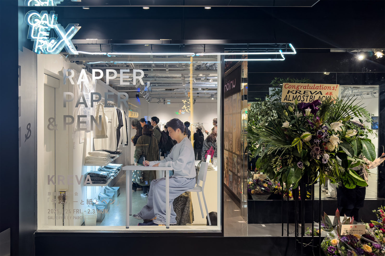 渋谷PARCOのGALLERY X BY PARCOで開催されたKREVA20周年記念プロジェクト 原書展示販売会「ラッパーと紙とペン」において、宣伝美術とグッズデザインを担当しました。ビジュアルの企画段階から参加し、アイディエーション、コンセプト設定、デザイン、モック作成、そして印刷ディレクションまで一貫してリードしました。このプロジェクトにおける主な役割は以下の3点です。
